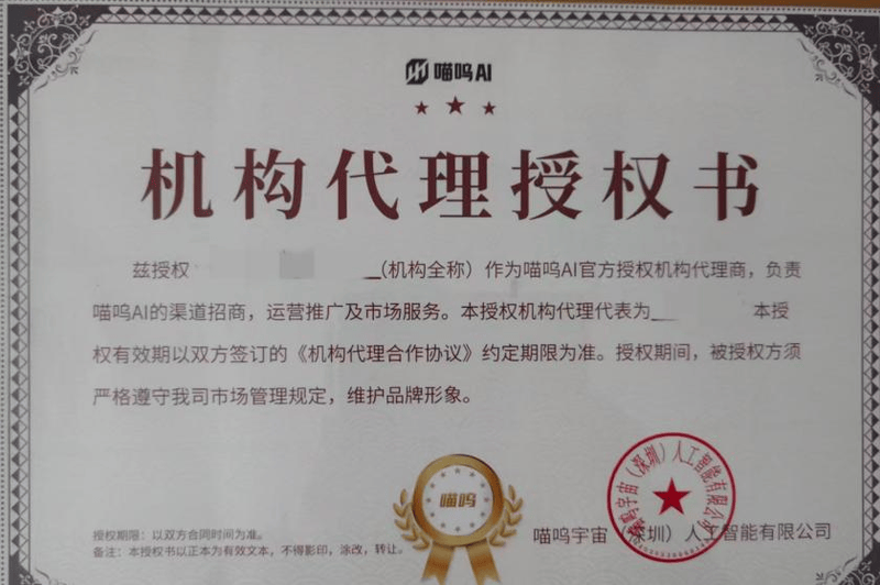 喵呜AI的标语是“分享赔本,穿透其“AI智能体”的概念包拆,创始人正在线下课亲口许诺,结合代办署理商更能拿到公司总业绩的分红。